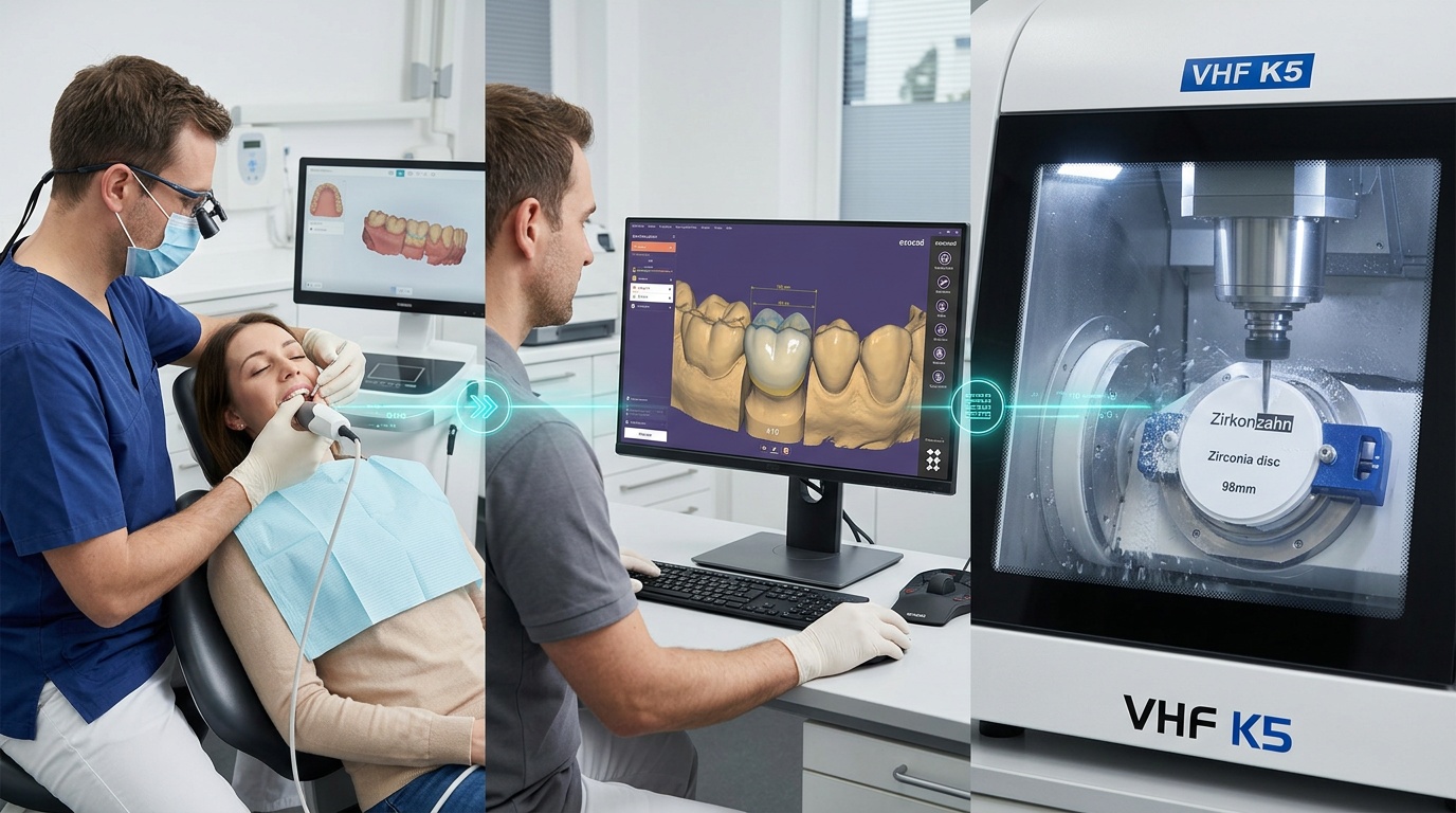 Come il flusso digitale end-to-end — scansione, progettazione CAD, fresatura e stampa 3D — sta cambiando tempi, precisione e redditività di laboratori e studi dentistici nel 2025.